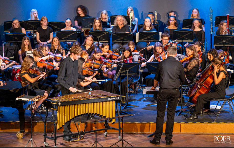 Ab Klasse 7 besteht die Möglichkeit, im gemeinsamen Orchester der Gymnasien und der Musikschule mitzuspielen. Hier werden in verschiedenen Phasen des Schuljahres Werke für Projekte der Gymnasien und der Musikschule erarbeitet.